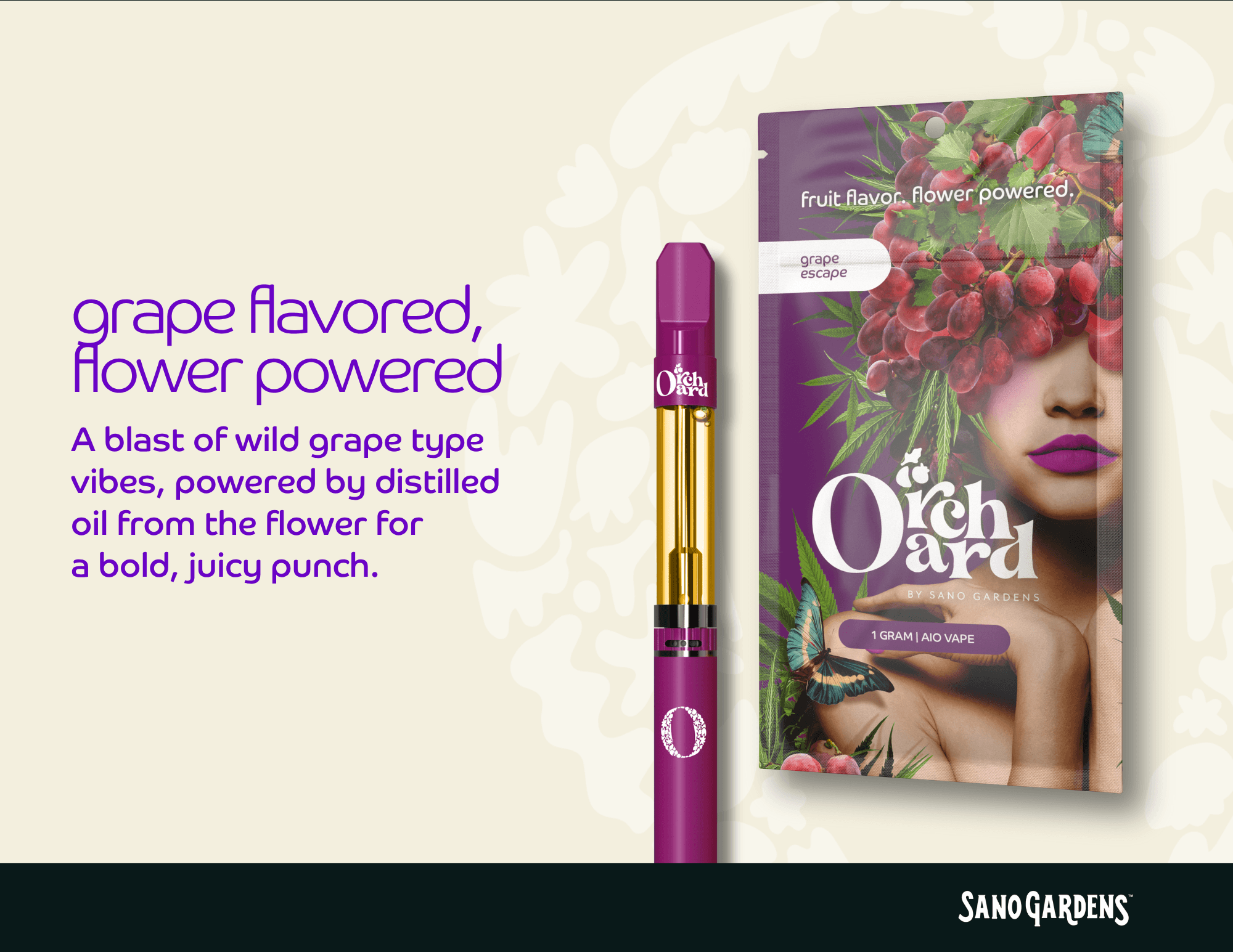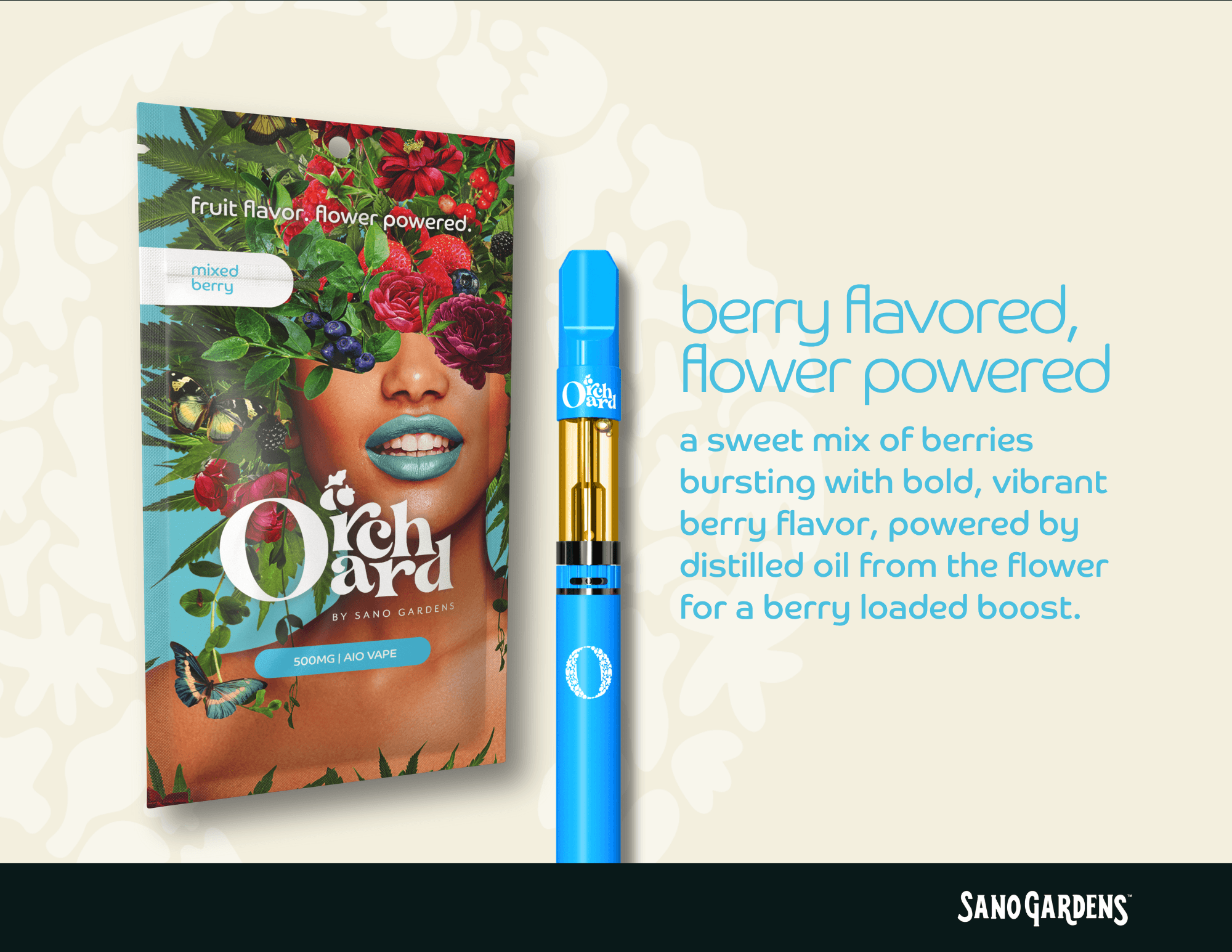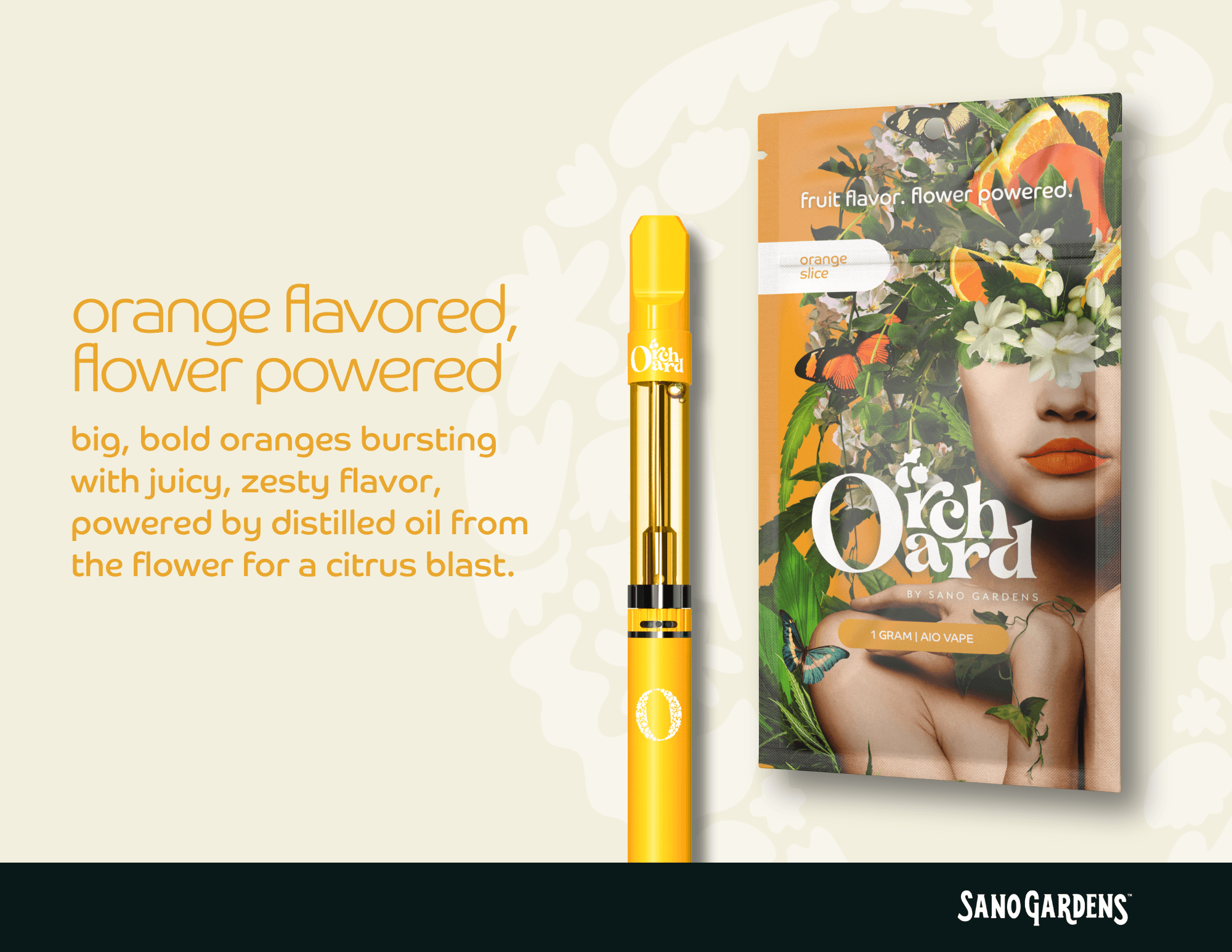 Orchard vapes are crafted with 90% high purity distilled oil and 10% special mix of botanical terpenes to deliver bold, fruit-forward flavors.